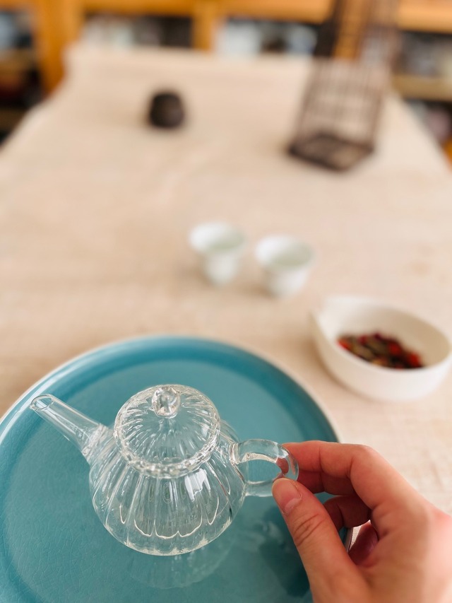 お湯を注ぐだけで、 茶葉がゆっくりとひらいていく時間。 透明なガラスのポットは、 お茶の色や、茶葉がひらいていく様子を 目でも楽しめるのが魅力です。 薬膳茶や白茶龍珠など、 ゆっくりと抽出するお茶にちょうどよく、 はじめての方でも気軽に使えます。 特別な道具がなくても、 お湯を注ぐだけで、 自然とお茶の時間がはじまります。 軽やかで扱いやすく、 日常にも取り入れやすいサイズ感です。 ■使い心地 ・茶葉が広がる様子を楽しめるガラス ・洗いやすく、日常使いしやすい形 ・薬膳茶や白茶にもおすすめ ※はじめての方には お茶と一緒に楽しめるセットもご用意しています。 「はじめてのお茶時間セット」 商品一覧よりご覧ください。 ■サイズ・仕様 容量:約500cc 素材:耐熱ガラス(ホウケイ酸ガラス) フィルター:ステンレス 中国製