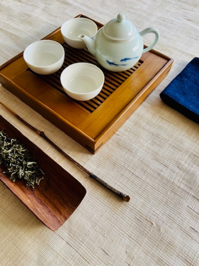 亜麻製の茶席布です。 落ち着いた色合いで、茶器や茶葉が美しく映えます。 中国茶の時間を静かに整えてくれる一枚です。 長さが180cmあるため、長いテーブルにもゆったりと敷くことができます。 幅20cmの茶席布と組み合わせて使うと、 茶席に奥行きが生まれ、より美しい雰囲気になります。 サイズ:30 × 180 cm 素材:亜麻