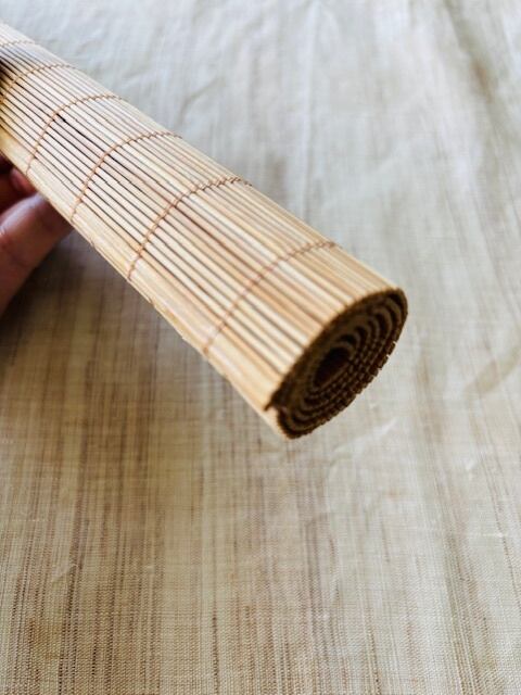 夏の茶席にぴったりな、涼感のある竹製の敷きマットです。竹の質感とナチュラルな風合いが、器やお茶の色を引き立て、静かな時間を演出します。