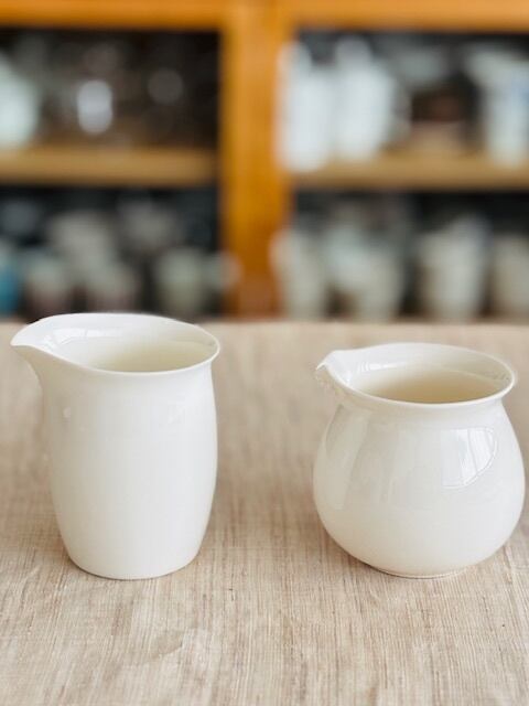 同じ白磁の茶海には、すっきりと背の高いスタイルもございますので、お好みの形を選んでお楽しみいただけます。