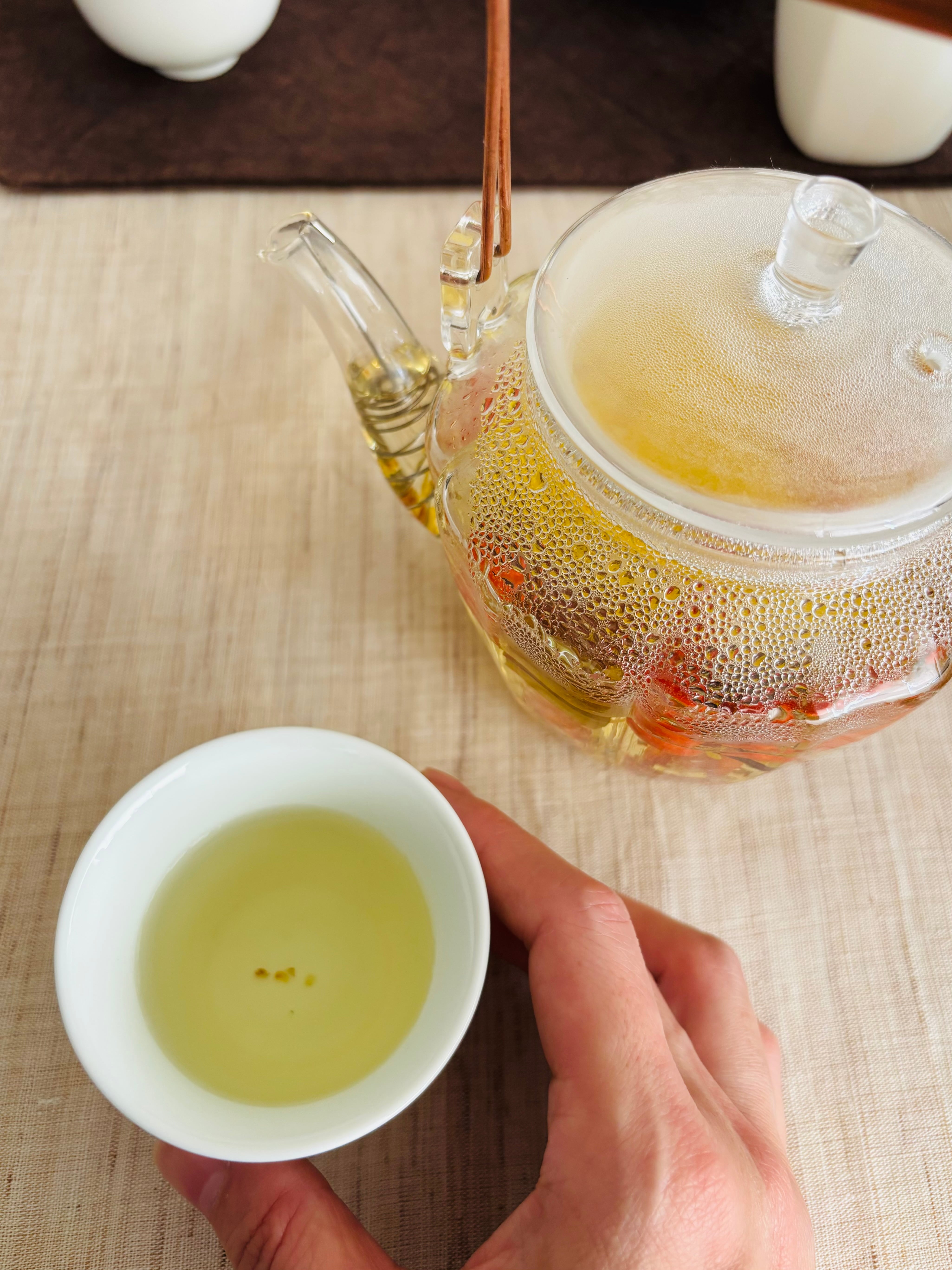 お茶の色や、茶葉がゆっくりと開いていく様子を目で楽しめるのも、ガラスならではの魅力です。