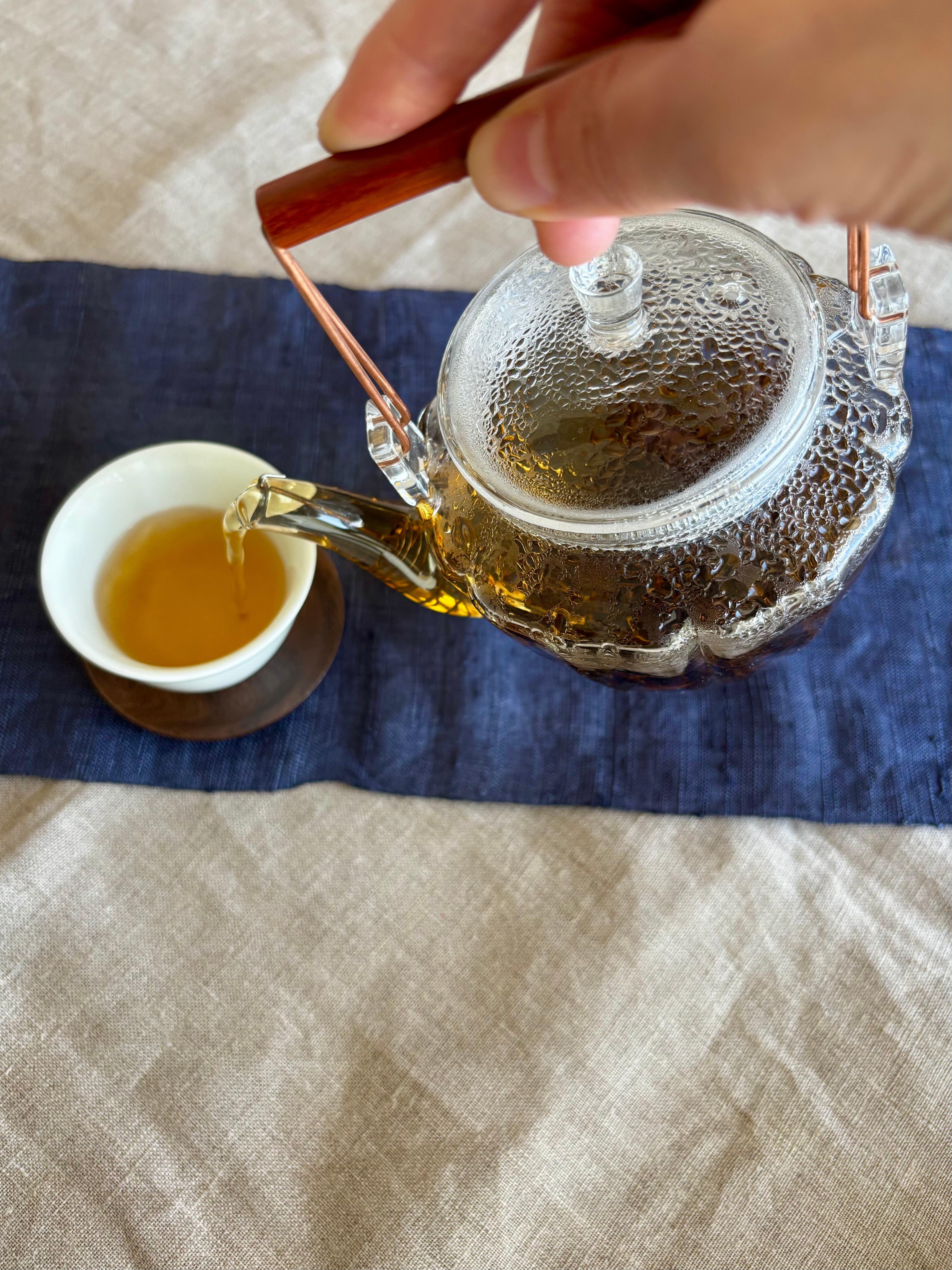 ガラスポットと、お茶をセットにしました。