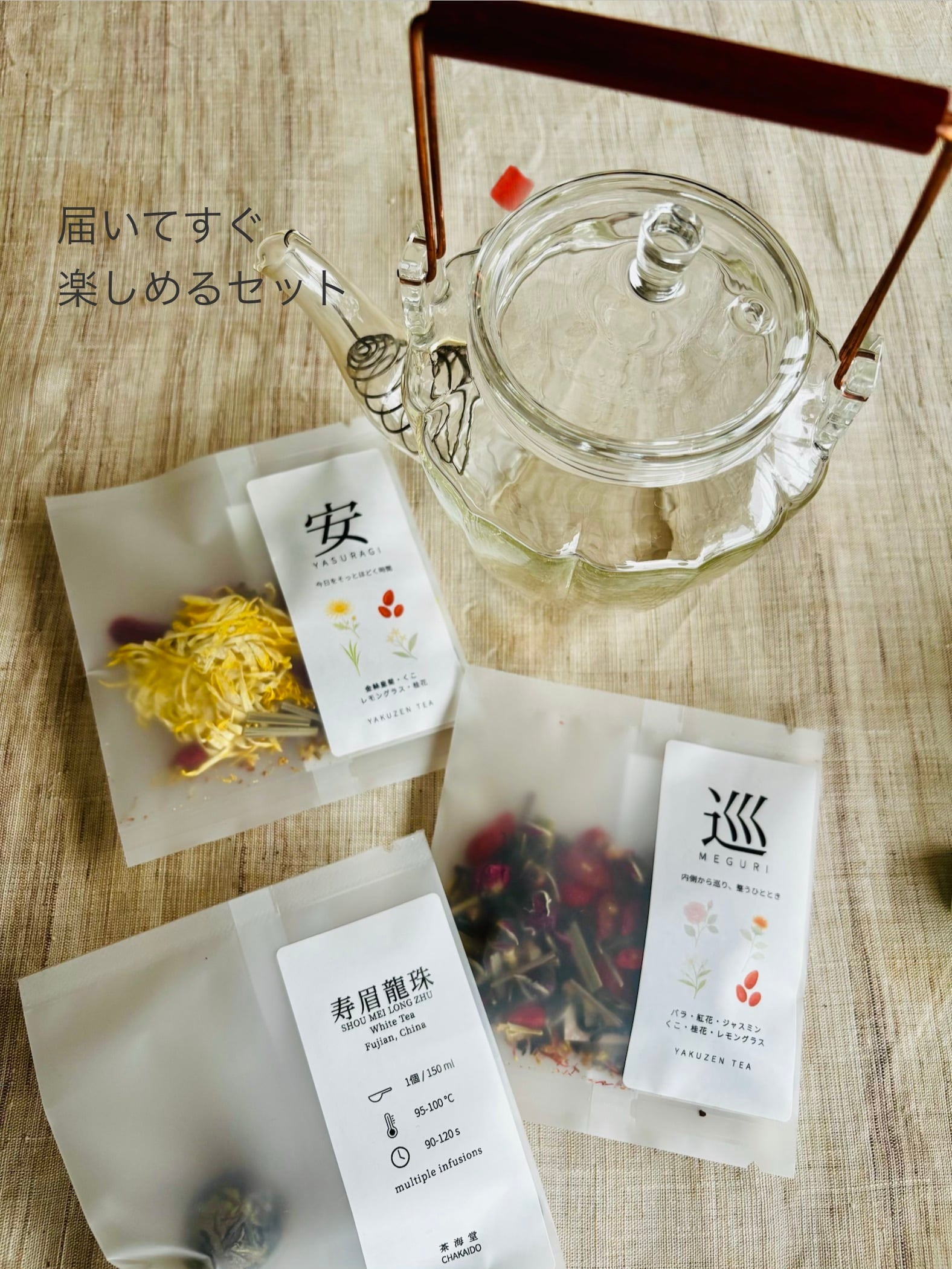届いたその日から、すぐに楽しめるお茶のセット。